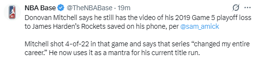 2026-04-16 23:30北京时间4月16日,根据NBA记者Sam Amick报道,米切尔的手机仍然存有2019年季后赛首轮G5输给哈登的比赛录像,在那场比赛中,米切尔22投仅有4中。