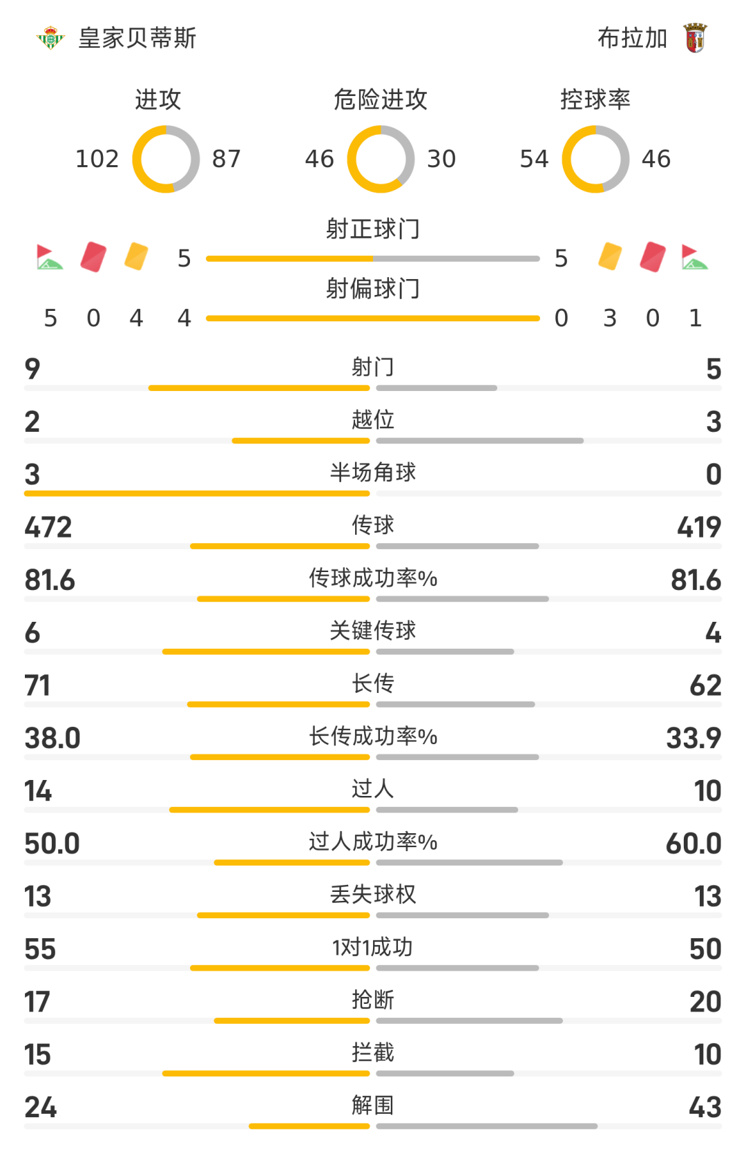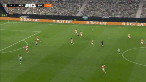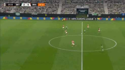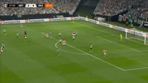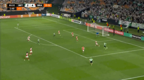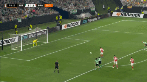 74’戈尔比世界波破门,布拉加4-2贝蒂斯,总比分5-3领先