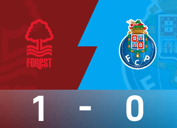 13’怀特禁区边起脚射门,皮球折射入网,森林1-0波尔图