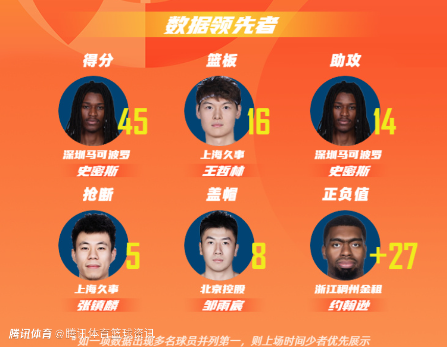 深圳马可波罗球员史密斯以单场45分的数据领衔得分榜;