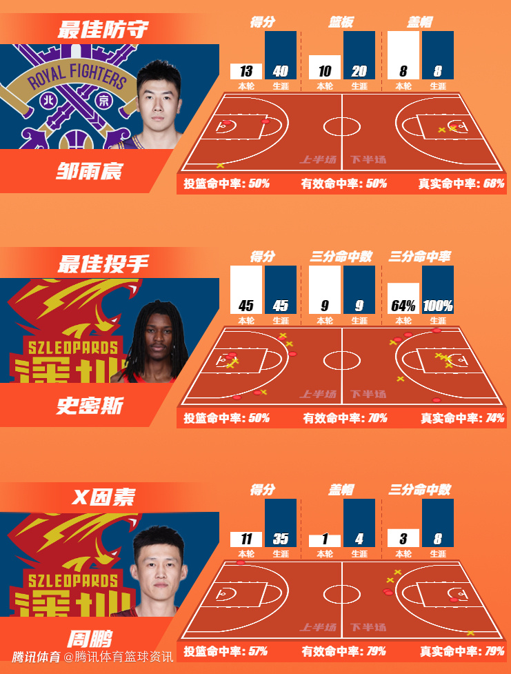 第39轮最佳防守球员由来自北京控股的邹雨宸获得;