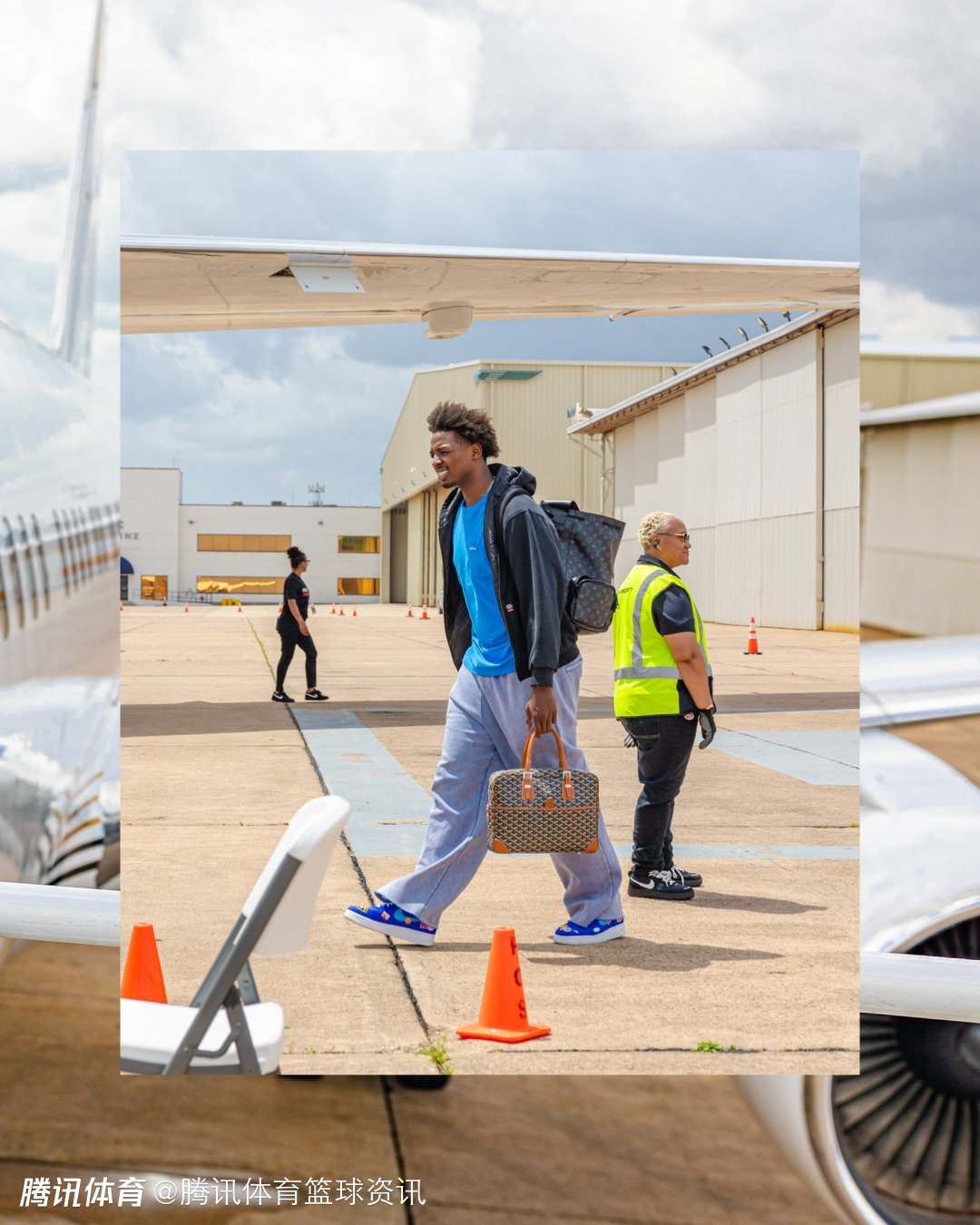 杜兰特、申京、阿门-汤普森、小贾巴里-史密斯等主力球员都有亮相。杜兰特头戴黑色帽子,身穿牛仔服,背着花色双肩包,气质独特。