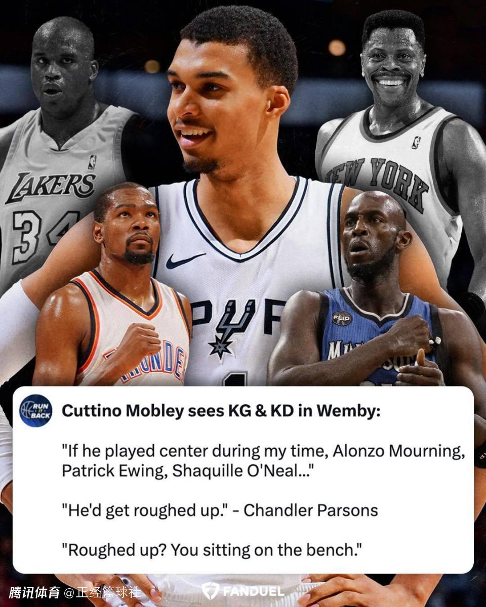 莫布里先是夸赞了文班亚马:“你们仔细想想,90年代的加内特,你们根本打不赢他。后来又出了杜兰特,文班亚马基本上就是他们的翻版,你们懂我的意思吧?那就是文班亚马的可怕之处。”