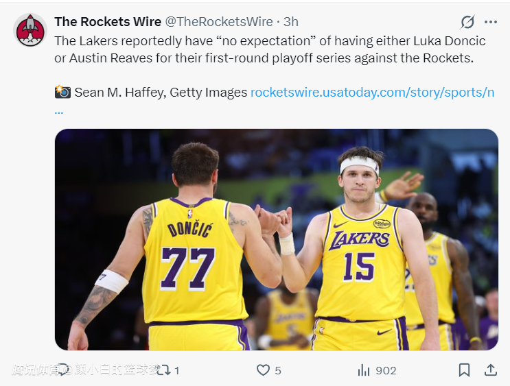 东契奇与里夫斯才是湖人的第一巨头与第二巨头,没有这两人的湖人队综合实力大打折扣,他们的伤情牵动着每一个湖蜜的心,但对火箭来说他们的伤情也会改变防守策略,乌度卡作为防守型主教练战术的变动肯定更大。