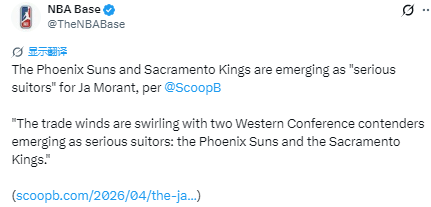 2026-04-18 00:10北京时间4月18日,据记者Scoop B报道,太阳与国王现已成为灰熊球星莫兰特的重磅追求者。