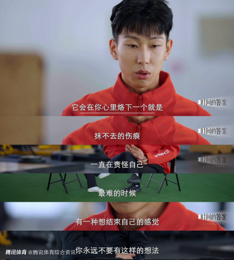 在你调整好自己情绪的时候,你想要再去搏一搏,再去拼4年的时候,但是你发现你走出的每一步要比从前艰难很多,大家可能就会有一些流言蜚语——他是不是回不去了?国家队是不是不可能再用他了?所有的问题你都会听到,我有的时候会蒙起被子来大哭,我父母不在家的时候。