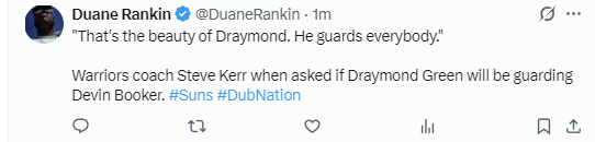 在谈到格林是否会防守布克时,科尔说道:“你这是想套我的战术安排啊。你怎么确定他一定会去对位布克?我都还没定。开玩笑的。这就是格林的厉害之处,他能防所有人。这也是我说他是我见过最出色防守者的原因,我见过、共事过很多优秀的防守球员,但从没见过有人能真正覆盖全场、从一防到五。他能换防控卫,不失位;也能防低位背打的五号位,以及介于两者之间的所有位置,还能破坏对手战术。今晚两队肯定会大量换防,格林时不时就会对上布克。每位球星都有自己的特点,而格林是独一无二的防守者,他的球商、对比赛的研究、对球员习惯的拿捏,让他无论对位谁都能做好准备。”