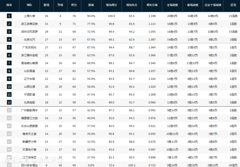 CBA最新排名:广东离奇输球神助攻北京 辽宁不敌浙江跌出前8