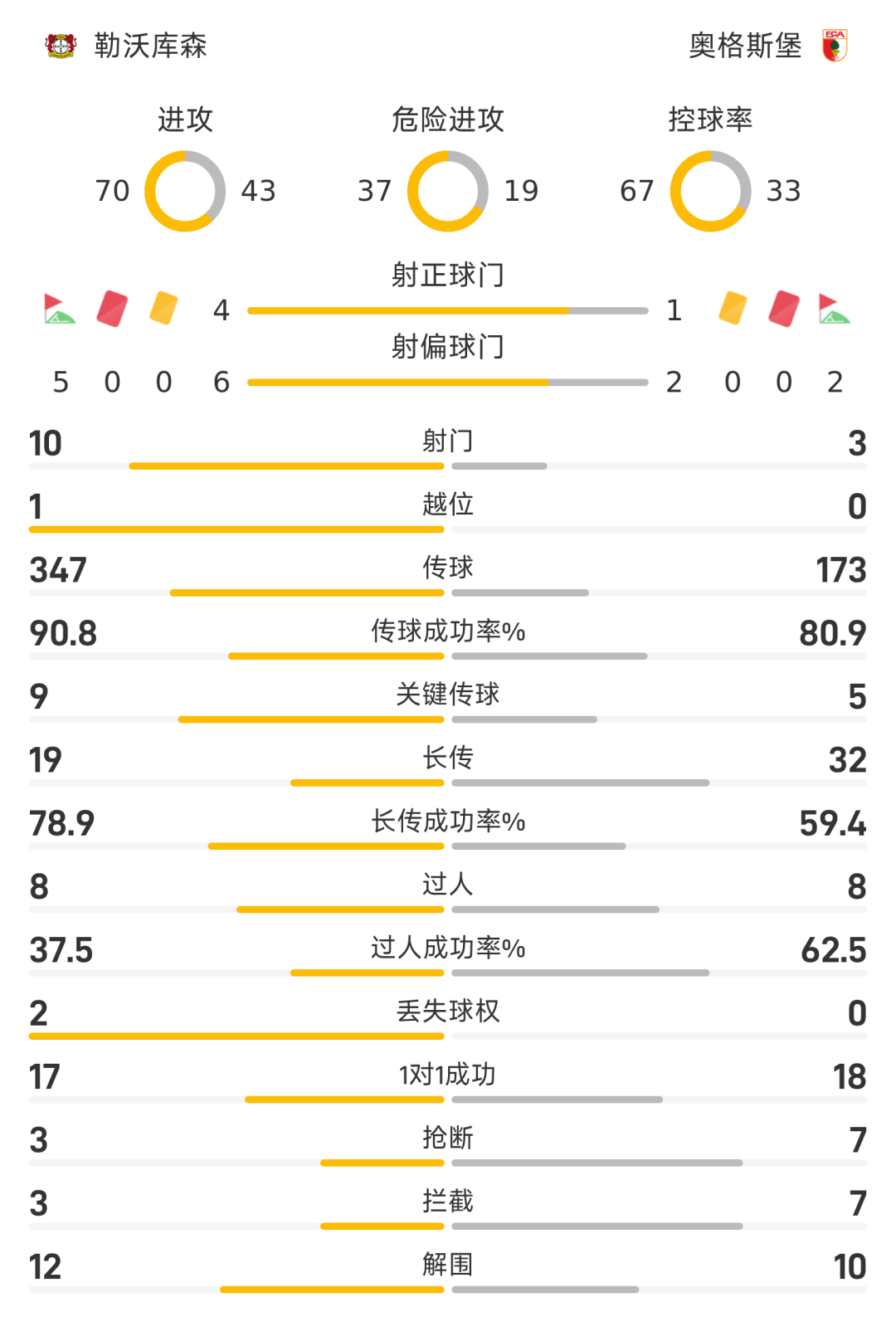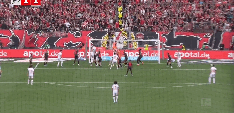 12’希克头球破门,勒沃库森1-0奥格斯堡