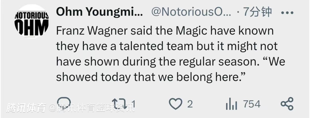 小瓦格纳说道:“我们这支球队天赋真的很出色。说实话,常规赛的表现确实没达到我们的预期,但有些事情就是这样。今天的比赛也证明了,我们完全有实力站在这个舞台上。不过话说回来,稳定性才是关键。一场比赛赢了不代表系列赛就能拿下,接下来我必须带头做得更好。”