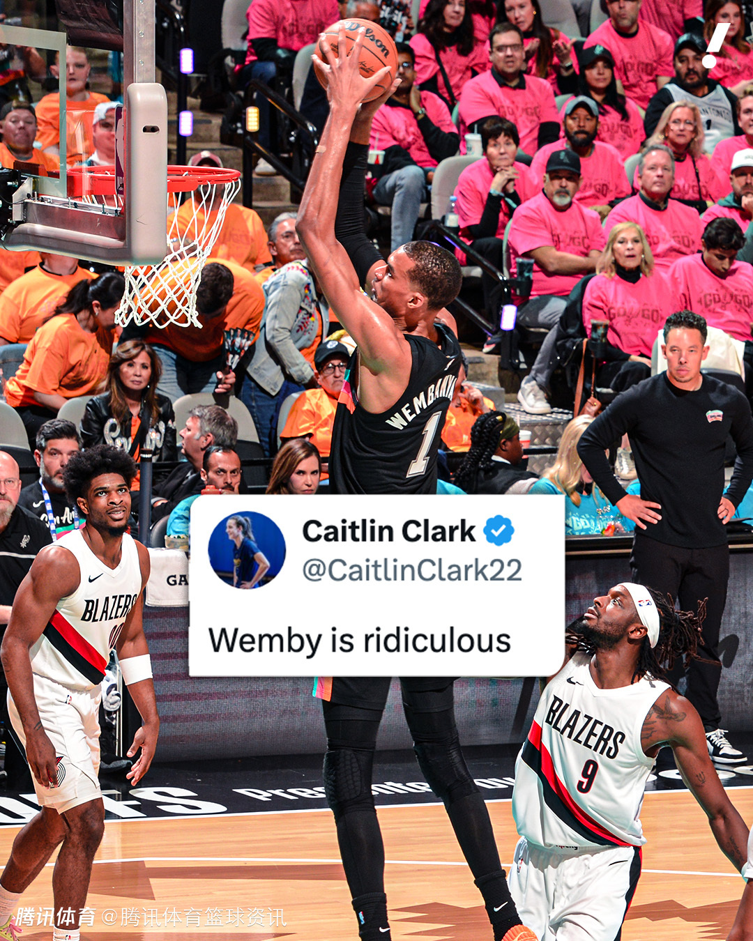 在上半场的比赛中,文班亚马完成了多次亮眼操作,大帽对手抛投、空接隔扣甚至还能漂移投中三分球,他的表现也一度让WNBA狂热队的球星凯特琳-克拉克在社交媒体上感慨:“文班亚马实在太离谱了!”