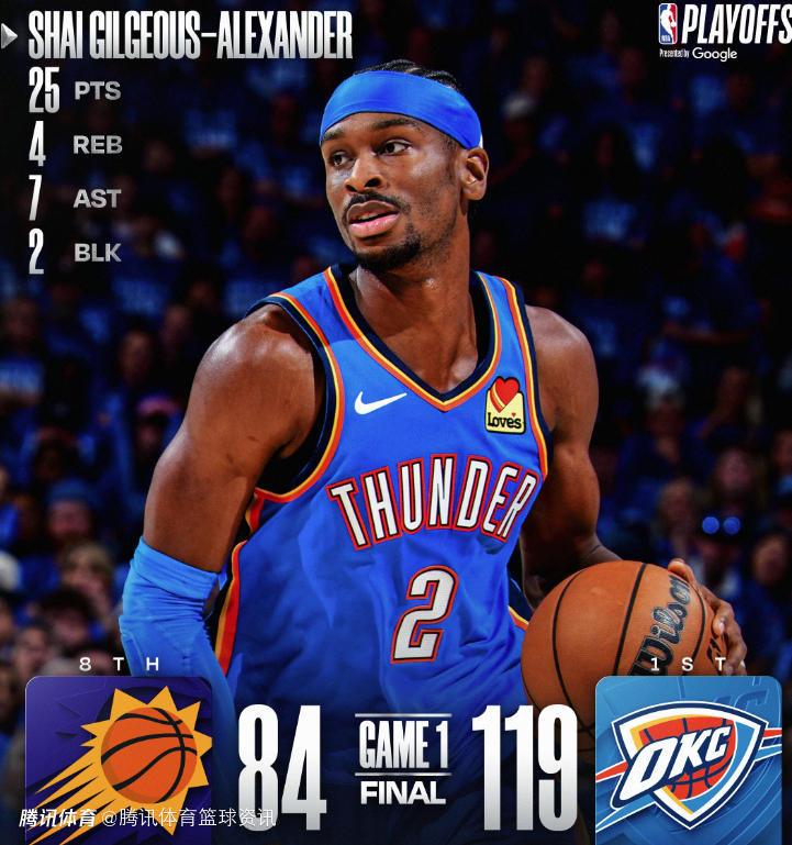 历史第四高!首轮G1场均分差16.9分 雷霆大胜35分领跑