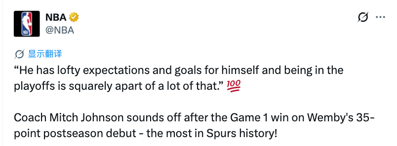 马刺主帅:文班为这场比赛做好了准备 他对自己有着极高的期待和目标