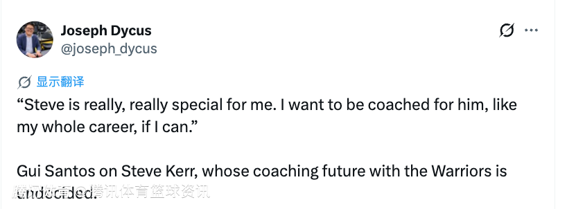 桑托斯表示:“是勇士给了我第一次登上NBA赛场的机会,这对我来说就像是实现了梦想,你懂的。所以科尔教练在其中起了非常关键的作用。说到他的执教风格,我特别喜欢一点——他自己打过球,现在当教练,非常懂球员。他在NBA打了那么多年球,经历过很多,所以他真的完全理解球员们会经历的一切。没错,我很喜欢这一点。就像我说的,科尔对我而言真的特别重要。如果可以的话,我真的很想继续在他手下打球,一直为他效力。”