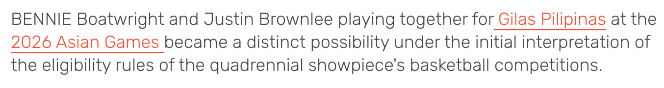 根据亚运会技术手册,男篮选手代表菲律宾出战2026年名古屋亚运会,持有护照为基本条件,同时需满足三年居住要求。菲律宾篮协执行董事埃丽卡-戴表示,这一规则为球队打开了更多的选人空间。