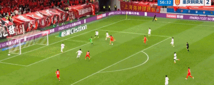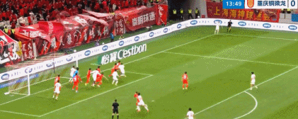 第45分钟,重庆铜梁龙左路传中,颜骏凌出击出现失误,陈纯新推射破门弑旧主,重庆2-0。
