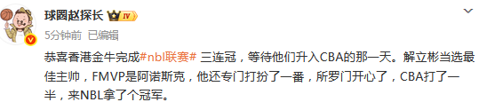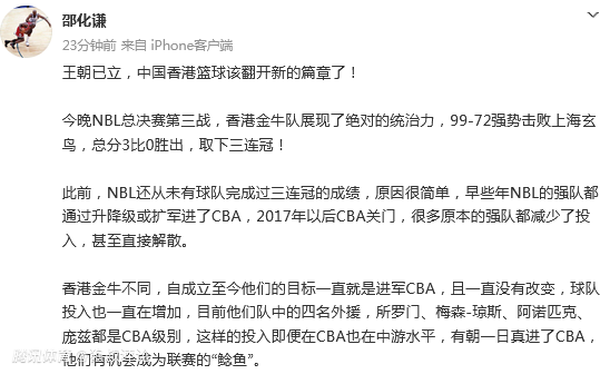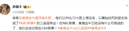 香港金牛创NBL三连冠引热议!媒体人:自成立至今的目标一直是CBA