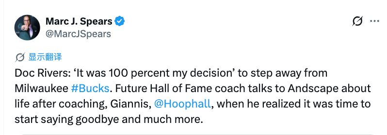 里弗斯:卸任雄鹿主帅100%是我自己的决定 过去两三年我一直在想这事