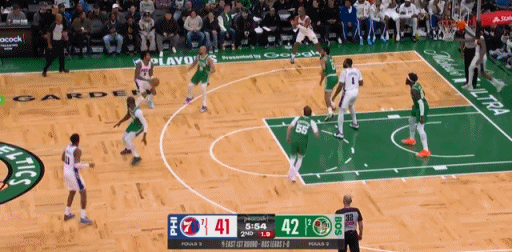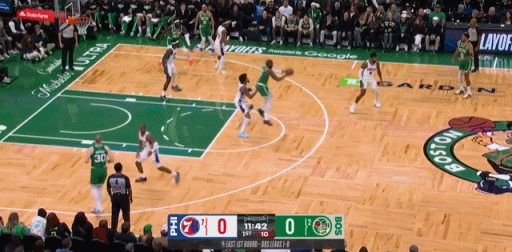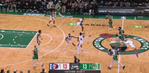首节比赛开始后,塔图姆很快命中三分,随后他连续命中上篮和中距离跳投,单节拿到7分4篮板2助攻。次节比赛开始之后,塔图姆连续给队友送出助攻,随后先是扣篮得手,然后上篮命中,单节再次拿到5分3篮板。不过在这节比赛中,凯尔特人队外线失守,被76人队连续命中三分,绿军上半场落后8分。