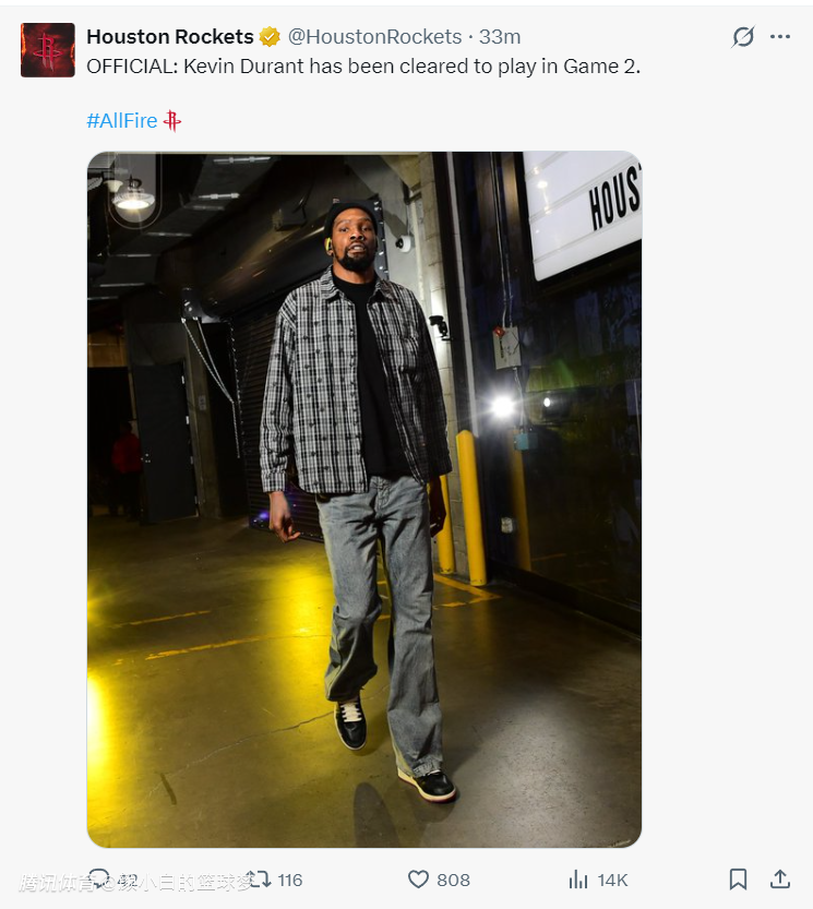 杜兰特此役复出,而且乌度卡说他没有登场时间限制。