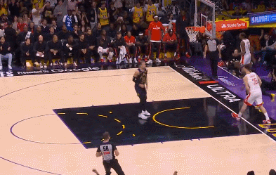 次节开场詹姆斯就三分命中,詹姆斯外线再中一个,申京艰难勾手命中一个,霍勒迪连续的外线三分打铁,外线信心很足就是投不进,反而是八村垒回了一个三分。斯玛特与艾顿配合空接暴扣已经拉开到15分打停火箭。暂停后火箭打出一波12-0缩小到3分,杜兰特完成5000+季后赛得分里程碑,