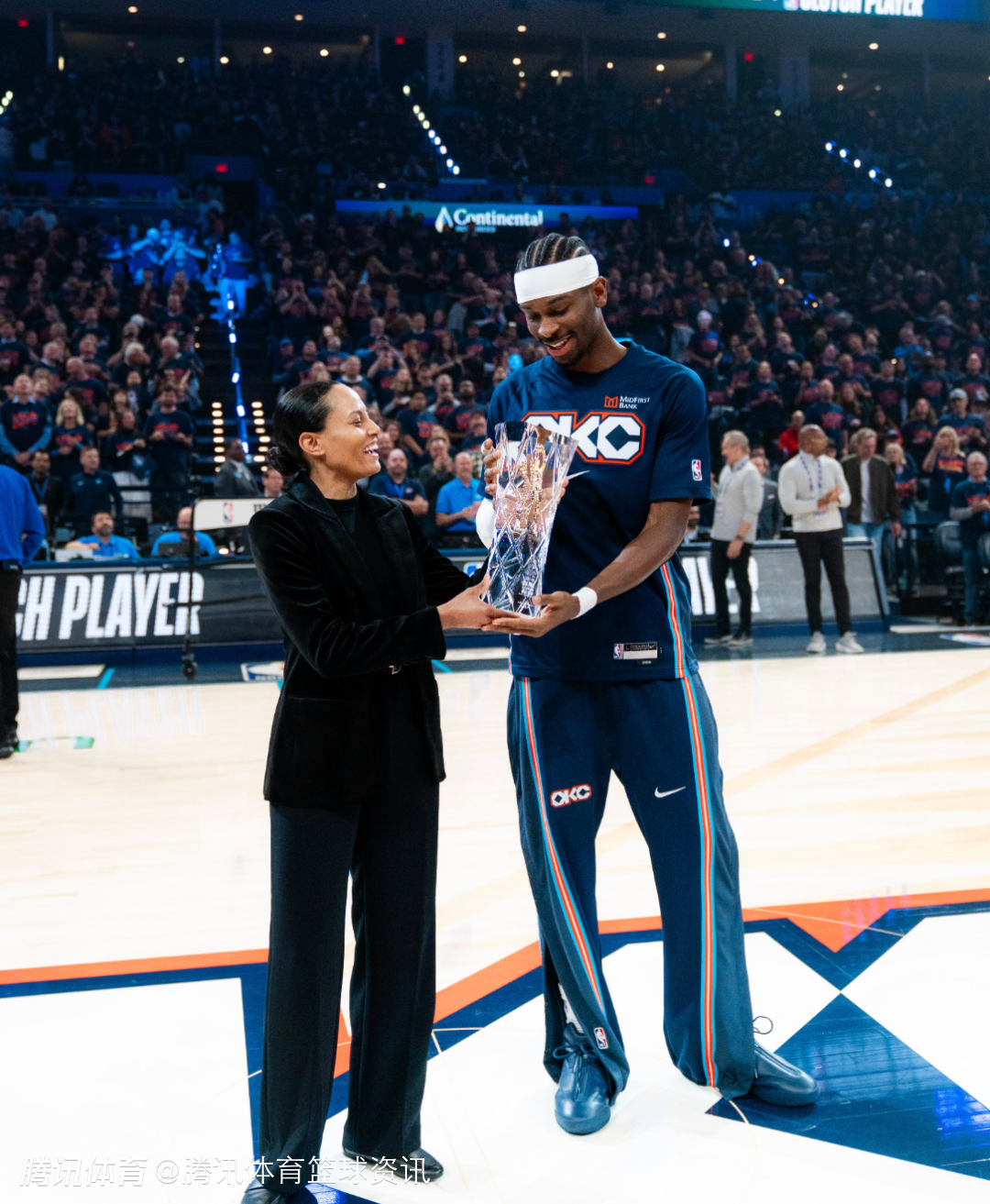 荣耀时刻!雷霆太阳G2赛前 亚历山大领取本赛季最佳关键球员奖杯
