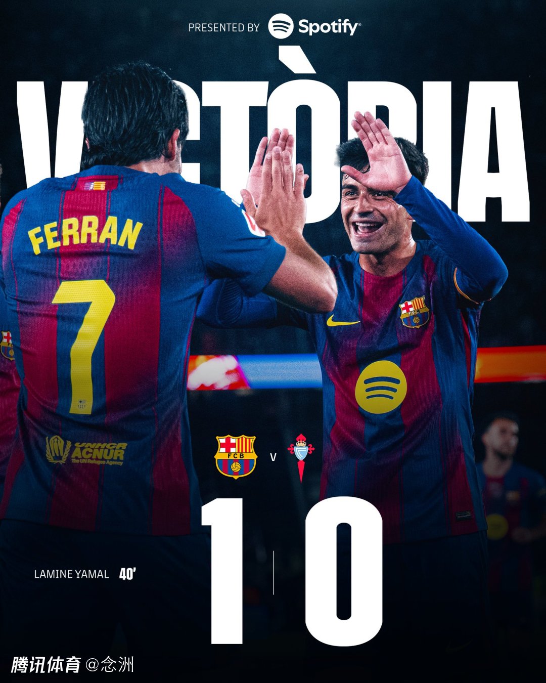 西甲第33轮,巴萨主场1-0战胜塞尔塔,取得联赛8连胜,积82分继续领跑,领先第2名皇马9分。坎塞洛伤退,亚马尔造点+点射+伤退,比赛因看台医疗状况一度中断,费兰进球越位无效。