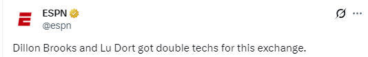 2026-04-23 11:40北京时间4月23日,NBA季后赛继续进行,雷霆队对阵太阳队。本场比赛进行到第三节,狄龙-布鲁克斯和多尔特发生肢体冲突,结果双双吃到技术犯规。