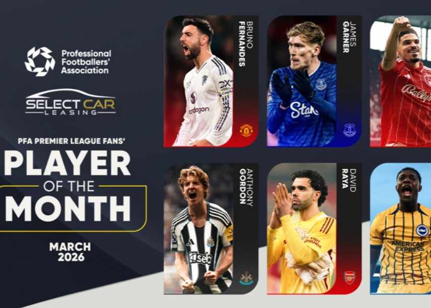 2026-04-23 20:50英格兰职业球员工会公布了球迷评选英超三月最佳球员候选,曼联队长B费领衔,拉亚、戈登等人在列。