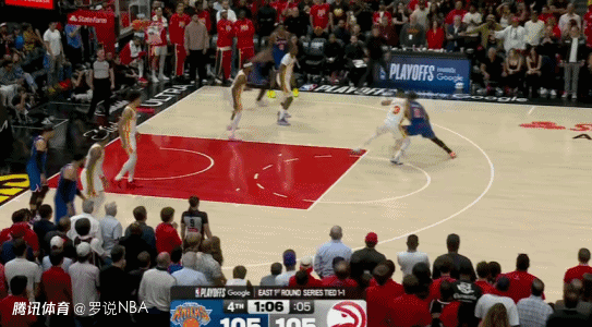 末节,库明加连进两球,克拉克森抛投命中。麦克布莱德、约翰逊互飙三分。唐斯两罚两中,哈特内线得分,麦克布莱德三分再中,奥孔古补篮得分,布伦森上篮命中。库明加上篮得分,约翰逊两罚不中,阿奴诺比三分命中。麦科勒姆中投命中,阿奴诺比、麦克布莱德三分连中,尼克斯将比分扳成105平。布伦森打成2+1,约翰逊补篮得分。尼克斯24秒违例,留给老鹰16.1秒。麦科勒姆准绝杀,库明加制胜抢断,老鹰获胜。