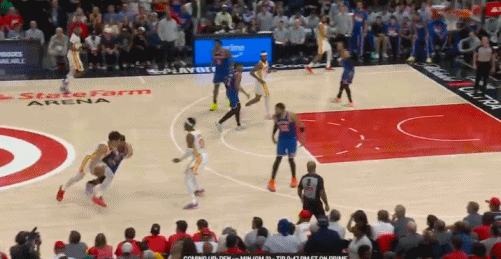 次节,盖耶补扣,唐斯扣篮。麦科勒姆连得4分,阿尔瓦拉多打成2+1,唐斯补篮再中,尼克斯还落后10分。奥孔古连送两记扣篮,麦科勒姆三分再中,老鹰领先18分。唐斯、克拉克森突破上篮,麦克布莱德连中两记三分,尼克斯一波12-2,把分差缩小到8分。半场结束,老鹰58-50领先尼克斯。
