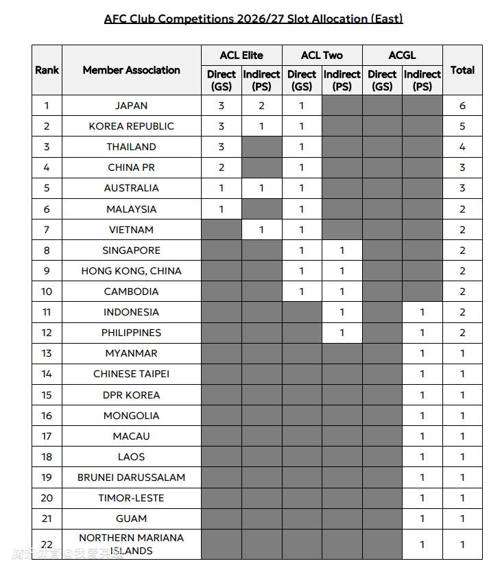 附:亚冠精英联赛参赛席位(正赛+附加赛)