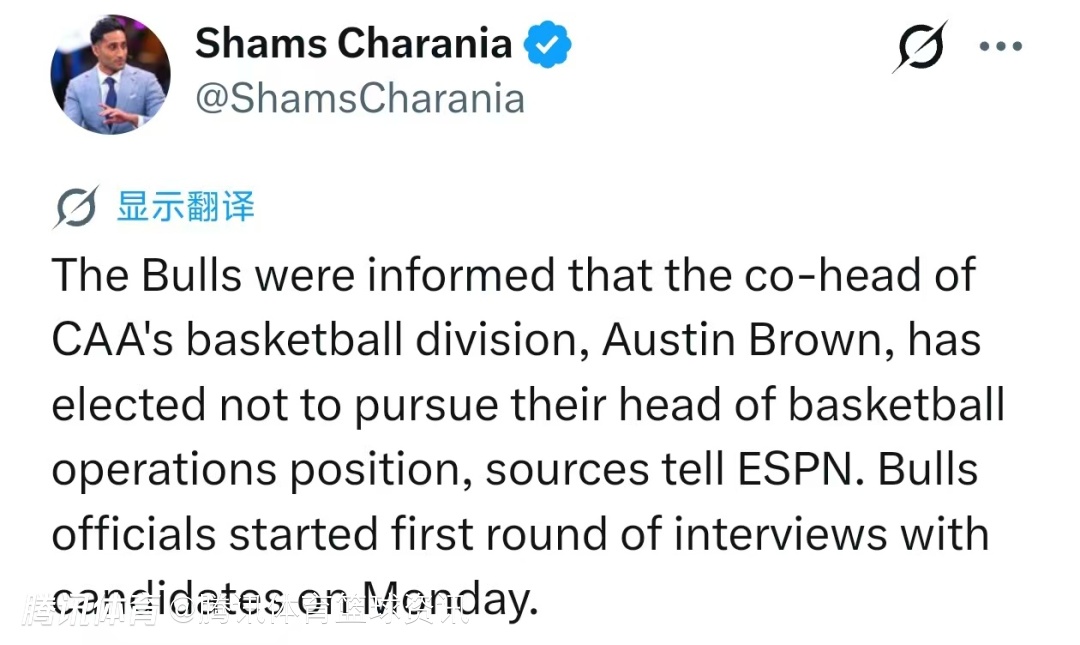 Shams:CAA篮球部门联合主管奥斯汀-布朗决定不参选公牛篮球运营总裁