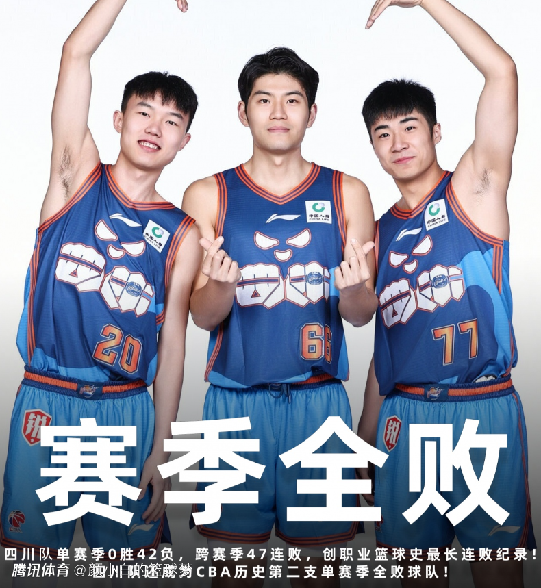 四川男篮则是另一个极端,他们在最终轮81-104惨败浙江队,这场比赛后四川男篮本赛季已经遭遇42连败,也就是跨赛季的47连败,他们创造了全世界职业篮球史上最长的连败纪录,四川队也成为CBA历史上第二支单赛季全败的球队。