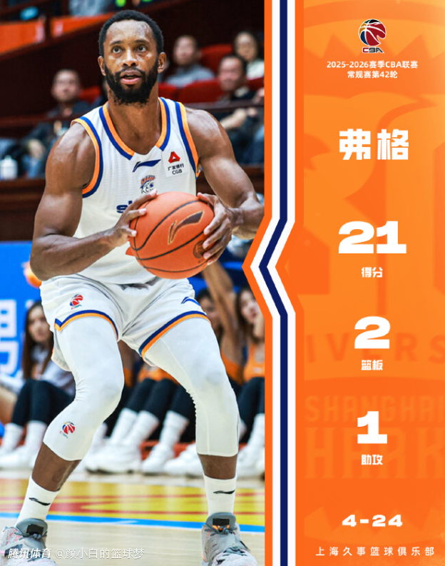 2026-04-25 07:10CBA常规赛最终轮,上海男篮94-88击败山东男篮豪取23连胜,这场比赛上海男篮依旧在洛夫顿、怀特塞德缺席的情况下拿到胜利。弗格29分钟拿到21分2篮板1助攻,古德温32分钟拿到15分9助攻7篮板,替补席的李添荣29分钟拿到19分5篮板。
