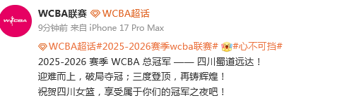 2025-2026 赛季 WCBA 总冠军 —— 四川蜀道远达!