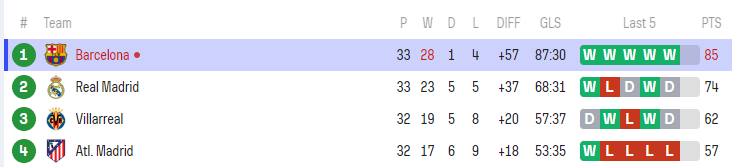 西甲:巴萨2-0夺9连胜领先皇马11分 最快下轮夺冠