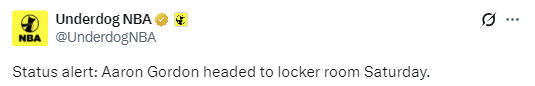 又伤一个?阿隆-戈登返回更衣室 此役带伤复出已得9分