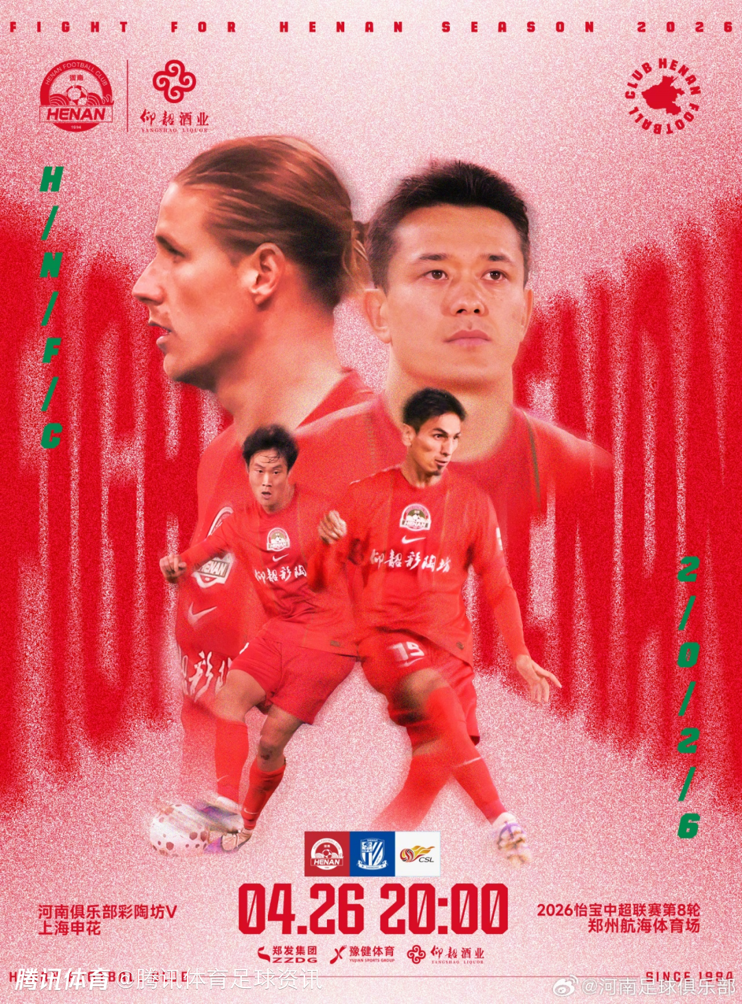 2026-04-26 19:00北京时间4月26日,今晚20点,中超第8轮迎来一场焦点对决,河南队主场迎战上海申花。赛前,双方首发阵容正式公布,本场比赛两队均派出4名外援首发,阵容配置相当。