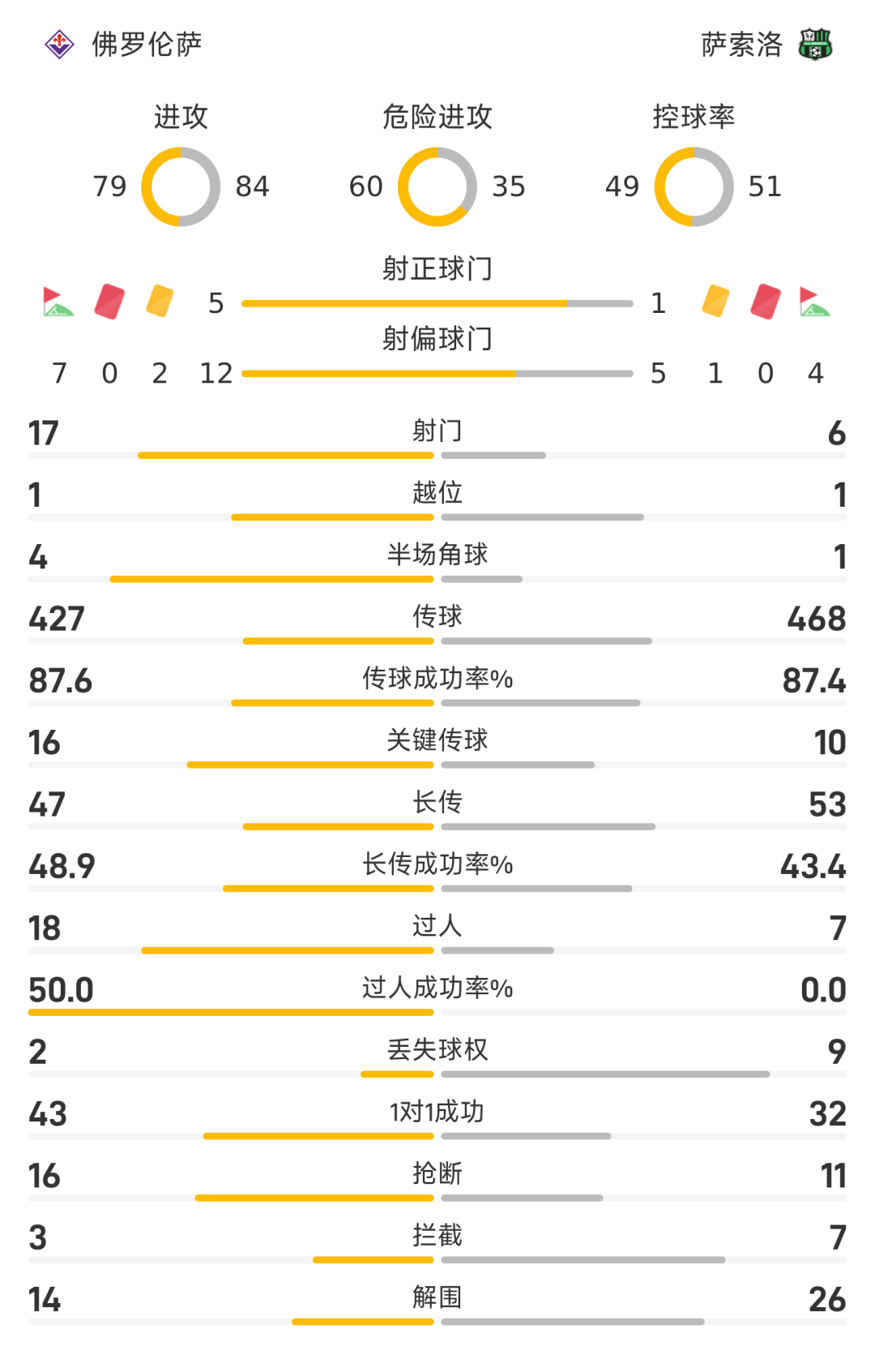 2026-04-26 20:3025/26赛季意甲联赛第34轮,佛罗伦萨0-0互交白卷闷平萨索洛。全场比赛两队均未能创造太多机会,唯一的亮点为下半场皮纳蒙蒂的射门击中立柱。最终两队0-0握手言和。