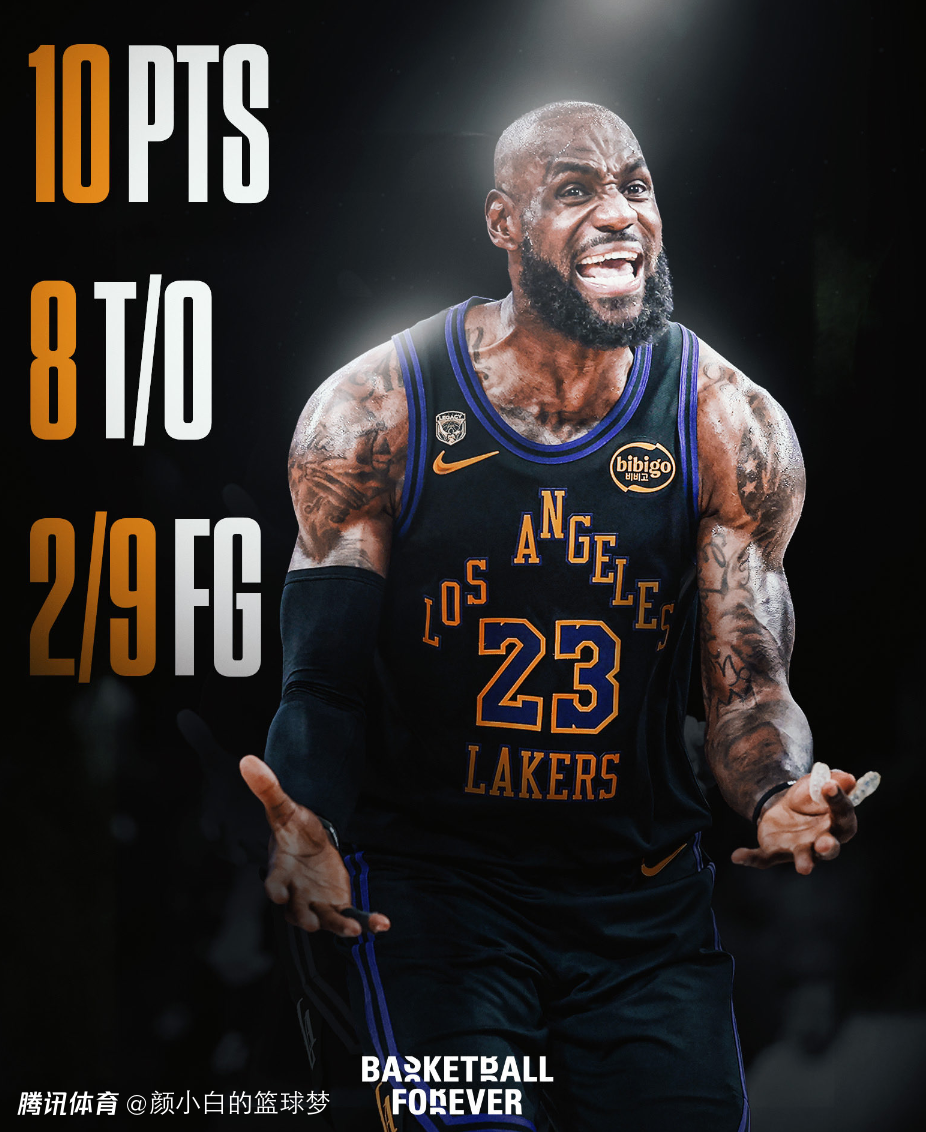这场比赛勒布朗-詹姆斯非常累,多次被抢断连腰都弯不下去,全场比赛33分钟,9中2,三分3中0,罚球6中6,拿到10分9助攻8失误4篮板的准四双,詹姆斯的失误集锦都可以剪辑1分钟。