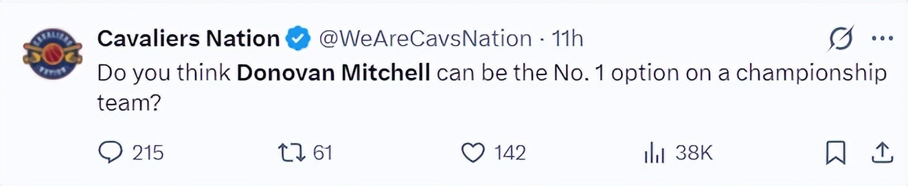 赛后骑士媒体《骑士国度》发出灵魂拷问:你认为多诺万-米切尔能否成为一支冠军球队的头号核心球员呢?