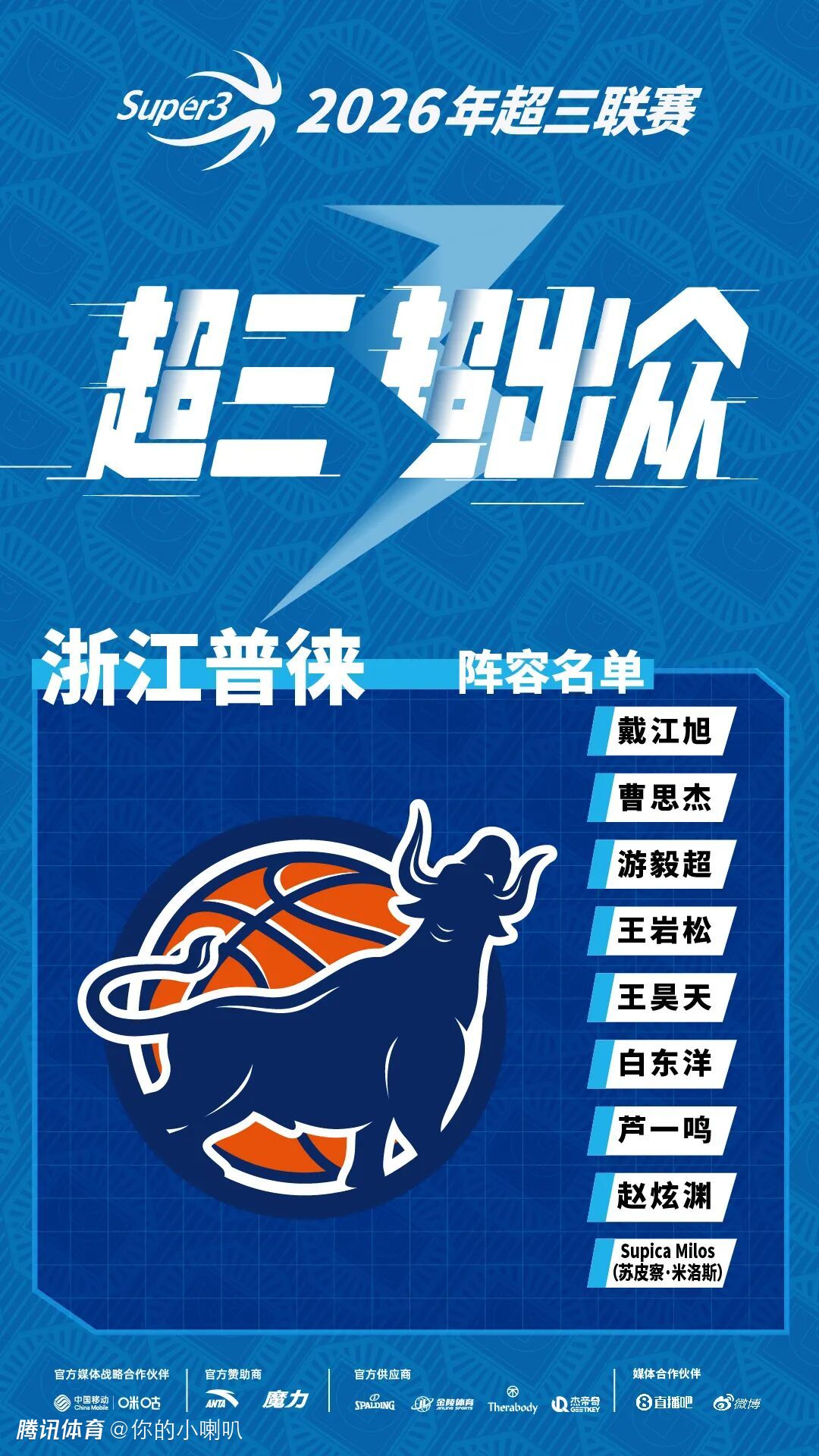 浙江普徕保留了3名核心球员,并引进了王岩松和白东洋两位实力派战将。此外,还有4名新人加入,其中包括首次登录超三联赛的外援苏皮察·米洛斯。