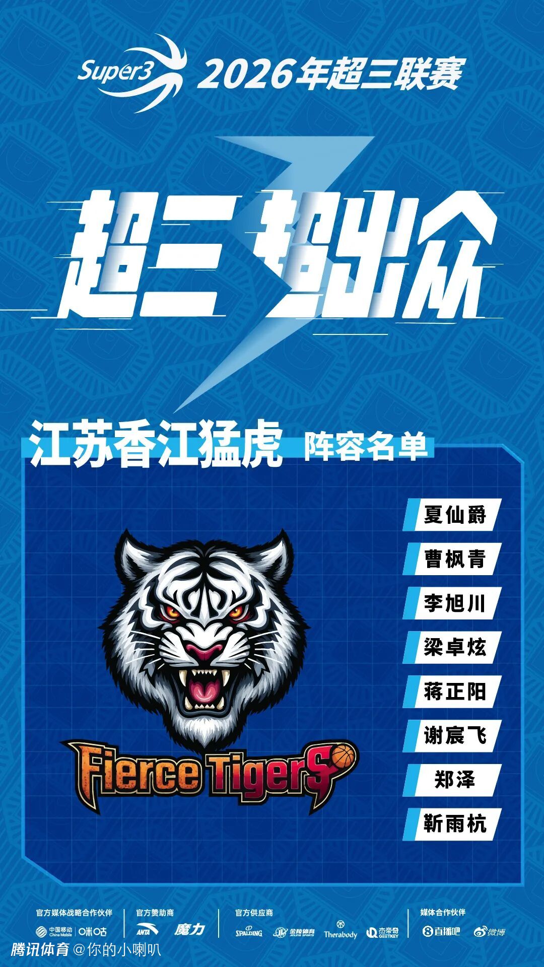 江苏香江猛虎是一支完全由新面孔组成的队伍。8名球员中,4位是凭借超三或卫星赛经验回归的球员,如夏仙爵、蒋正阳等,另外4位则是首次登录超三联赛的新人。
