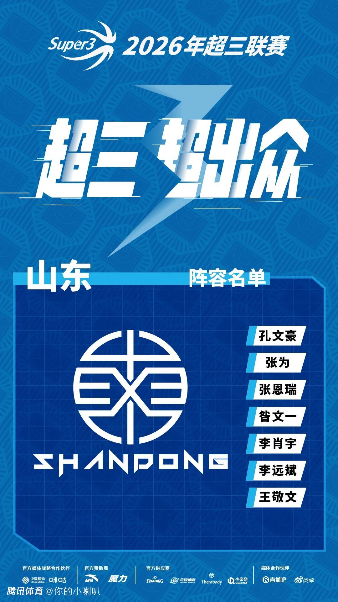 山东队新赛季保留了4名主力球员,保持了阵容的延续性。此外,引进了孔文豪,并补充了全新登录超三联赛的昝文一、王敬文。