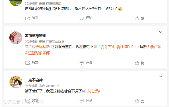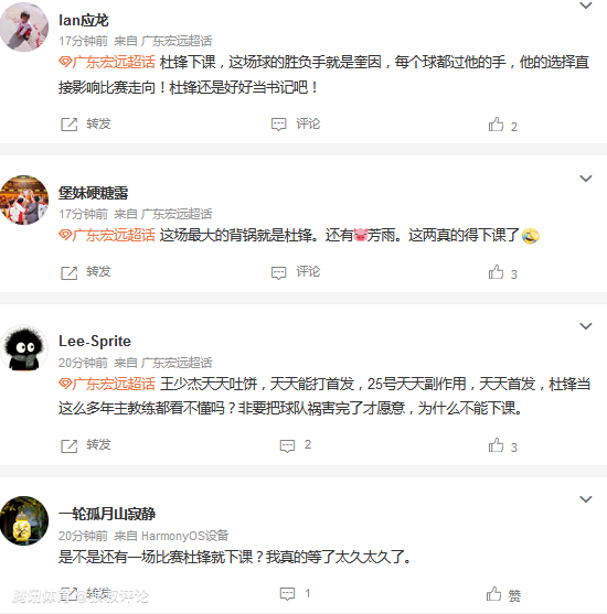 赛后,不少球迷在各大网络平台喊出了杜锋下课的各种声音。