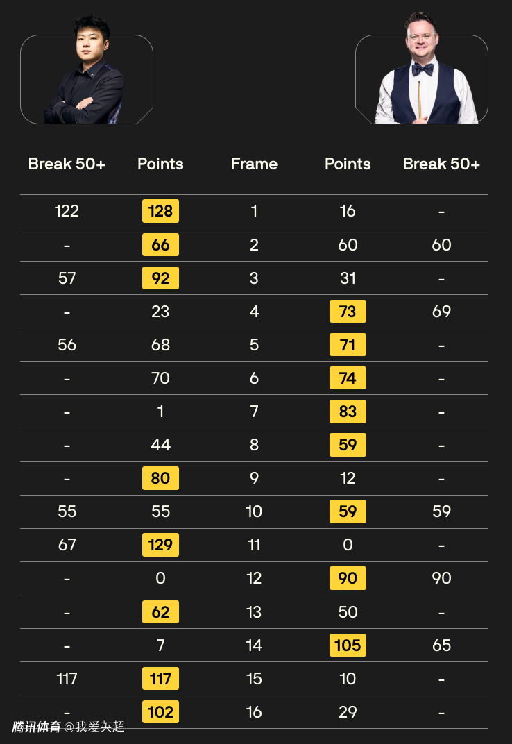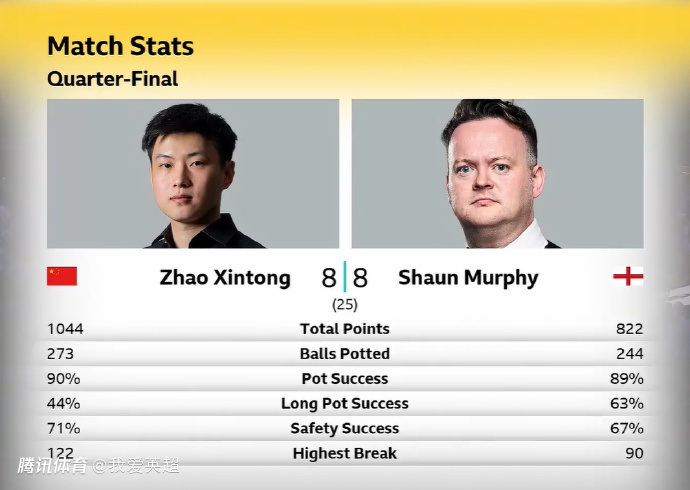 第二阶段,赵心童打出单杆55、67、117分,墨菲打出单杆59、90、65分。数据方面,赵心童总得分领先墨菲。但长台成功率依然只有44%,这也是第3阶段决胜时刻,赵心童急需改进的地方。