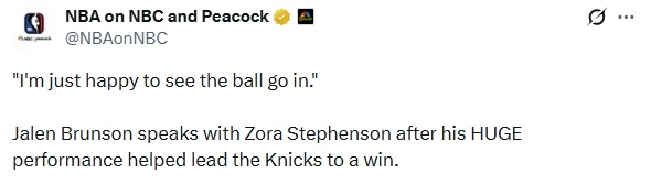 谈到自己末节17分的表现时,布伦森说道:“没什么特别的,能把球投进就很开心。”