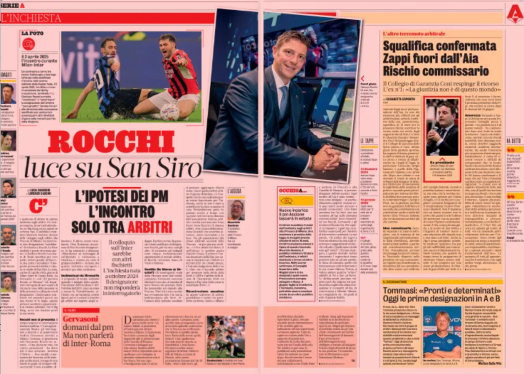 不过,调查仍集中在国米的比赛里,因为罗基被指控“挑选了国米青睐的裁判”。调查的重点是两场比赛:国米与博洛尼亚的联赛,以及国米与AC米兰的意大利杯。