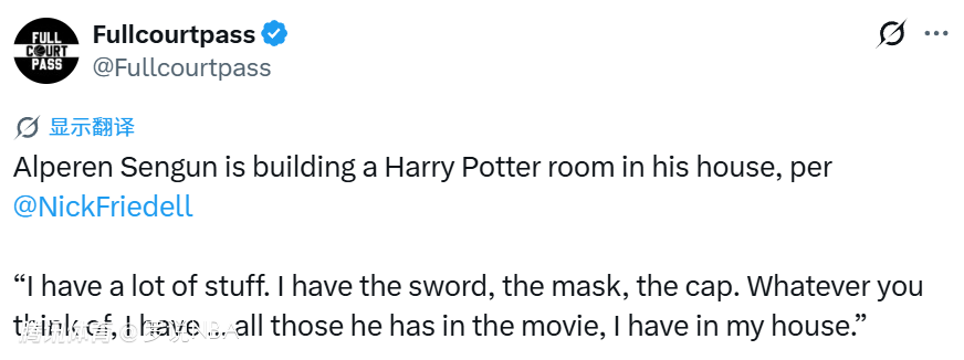 或许日后球队客场飞行的漫长旅途,会给了他静下心读原著的机会。NBA也有不少哈利-波特同好:鹈鹕的乔丹-普尔曾身穿拉文克劳主题服饰亮相赛前,独行侠的克莱-汤普森也去过环球影城魔法园区。